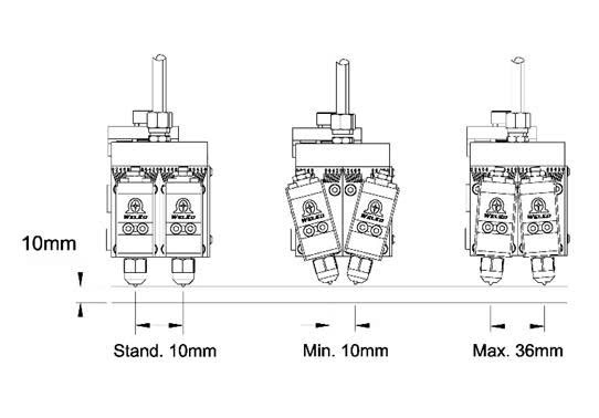 - Hai mô-đun với vòi phun có thể xoay độc lập để điều chỉnh khoảng cách phun